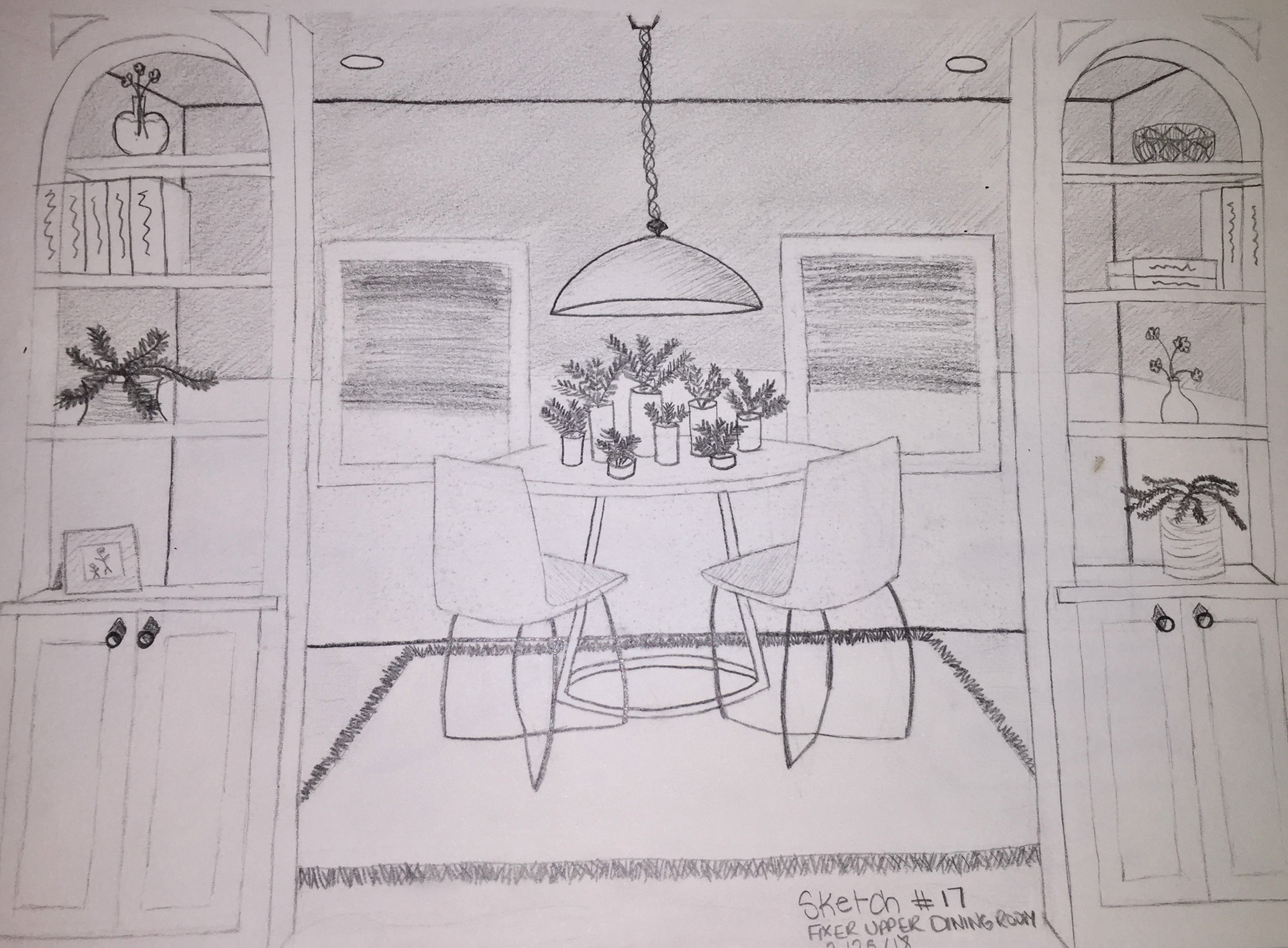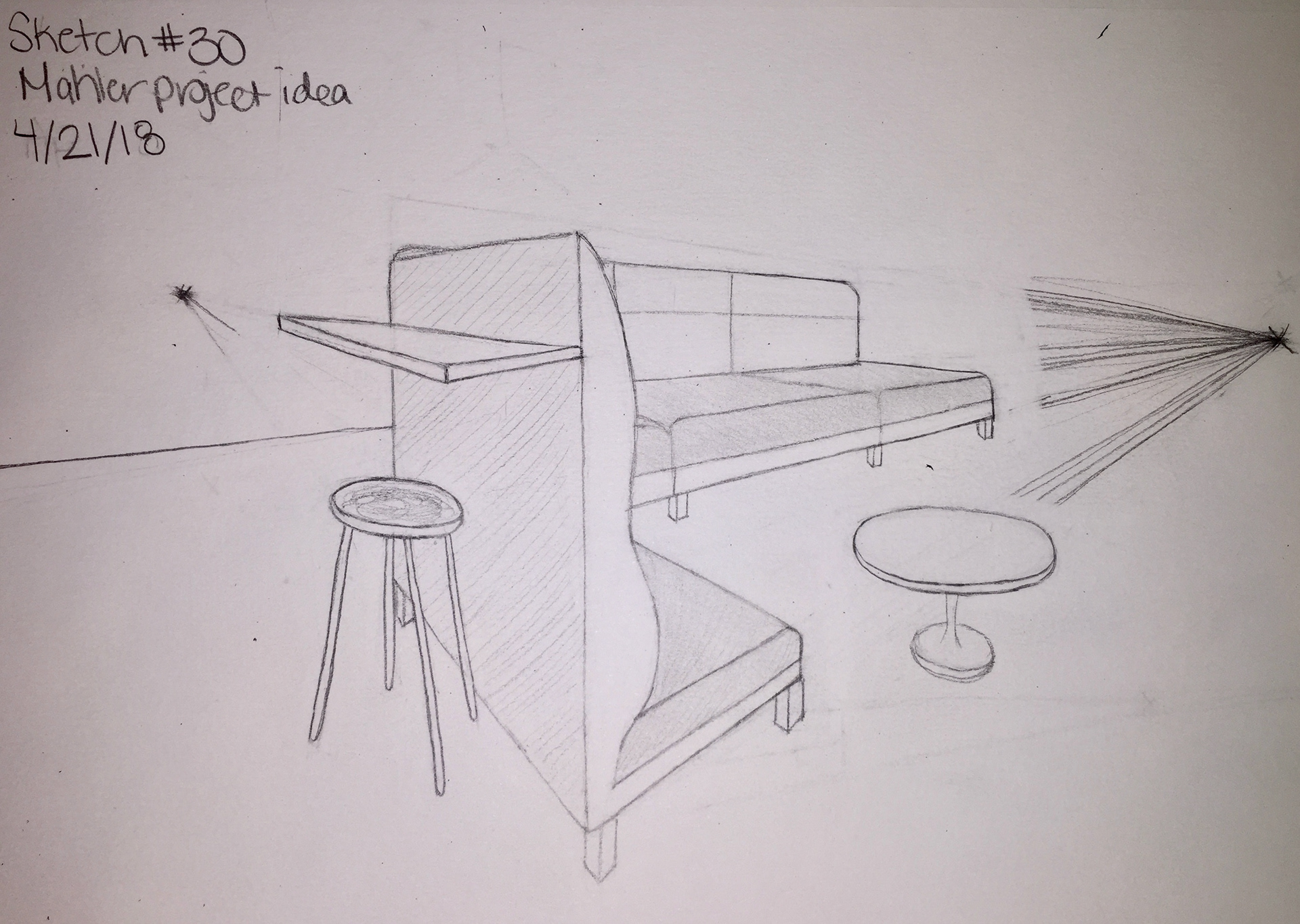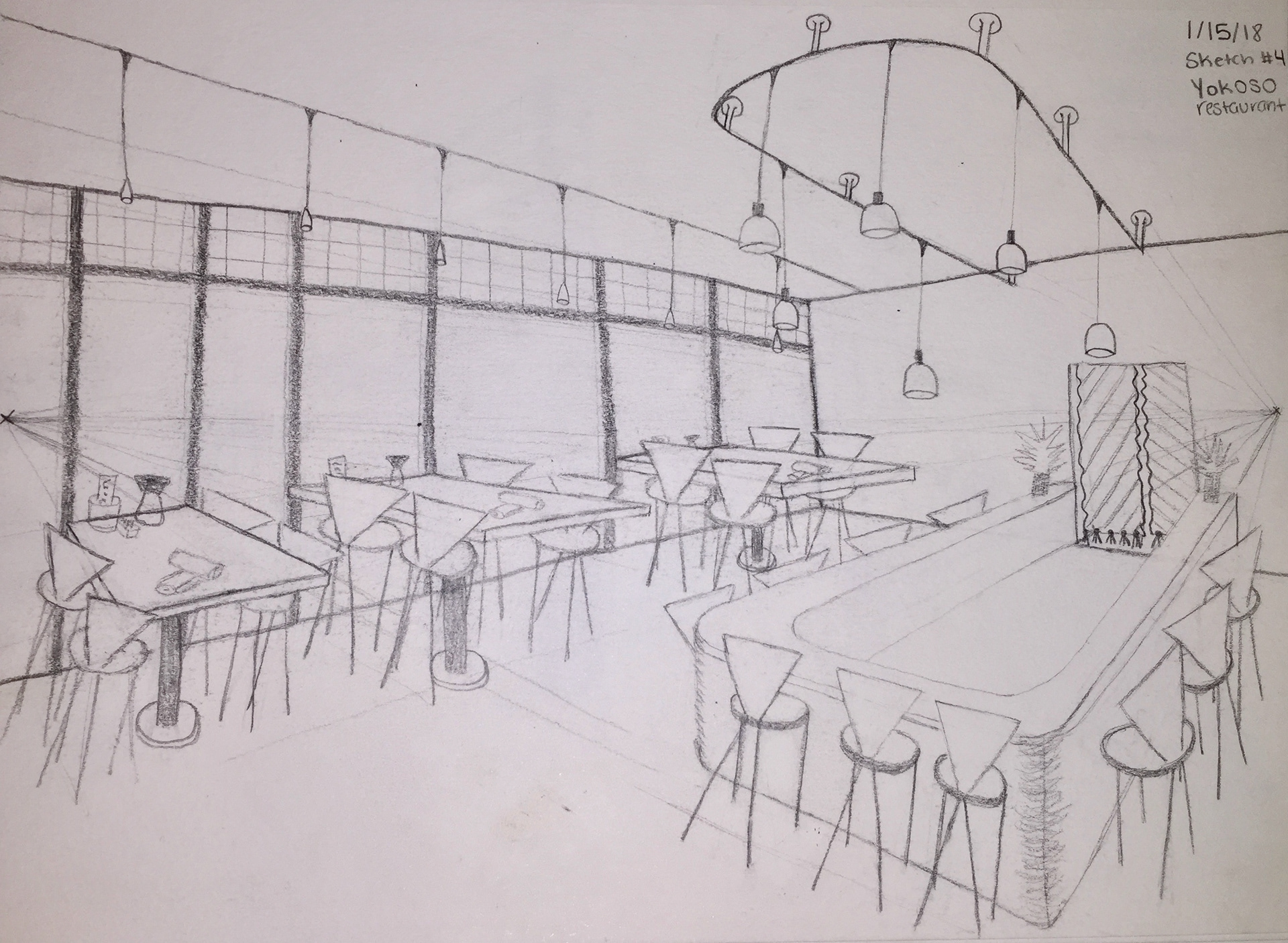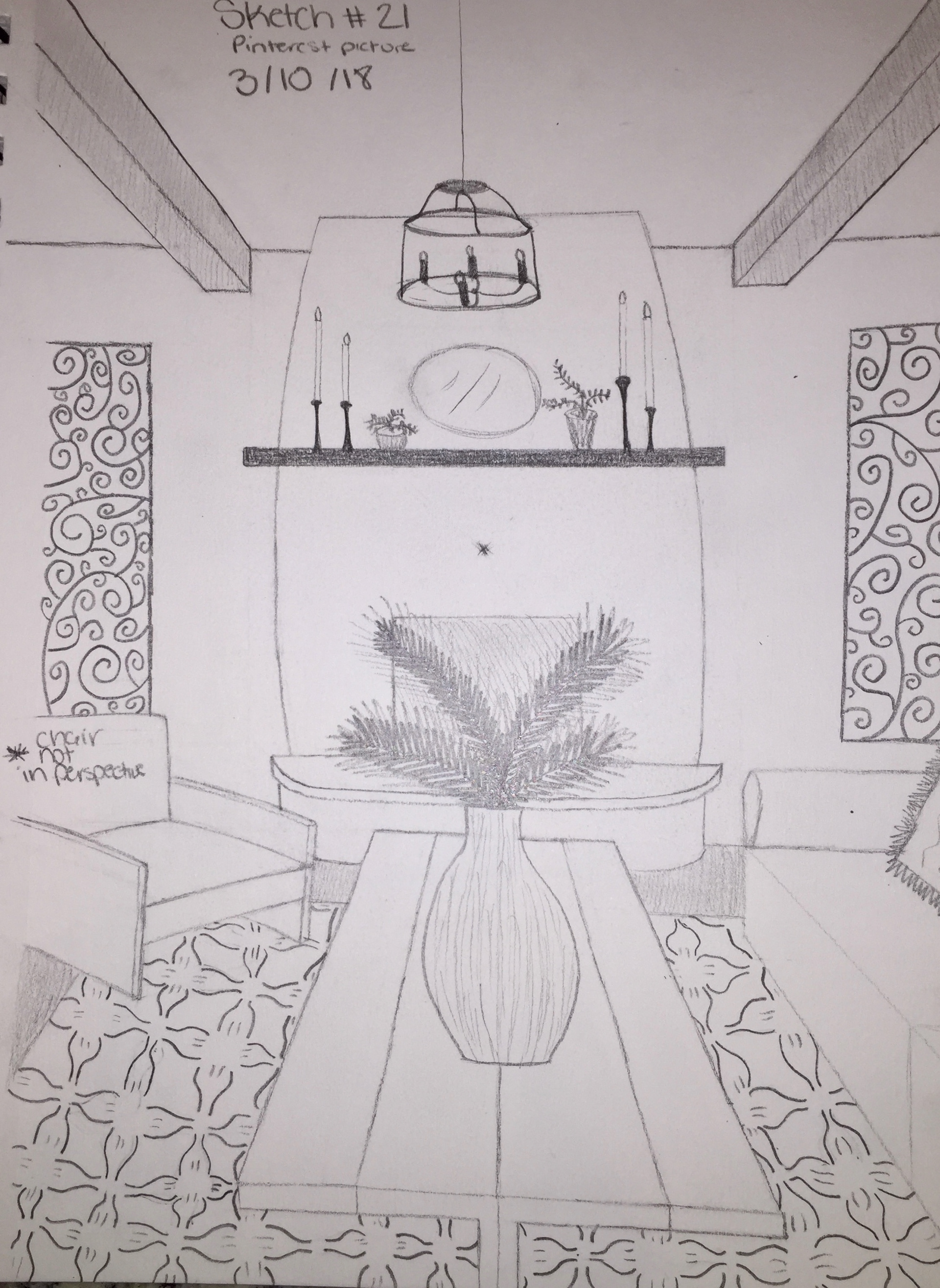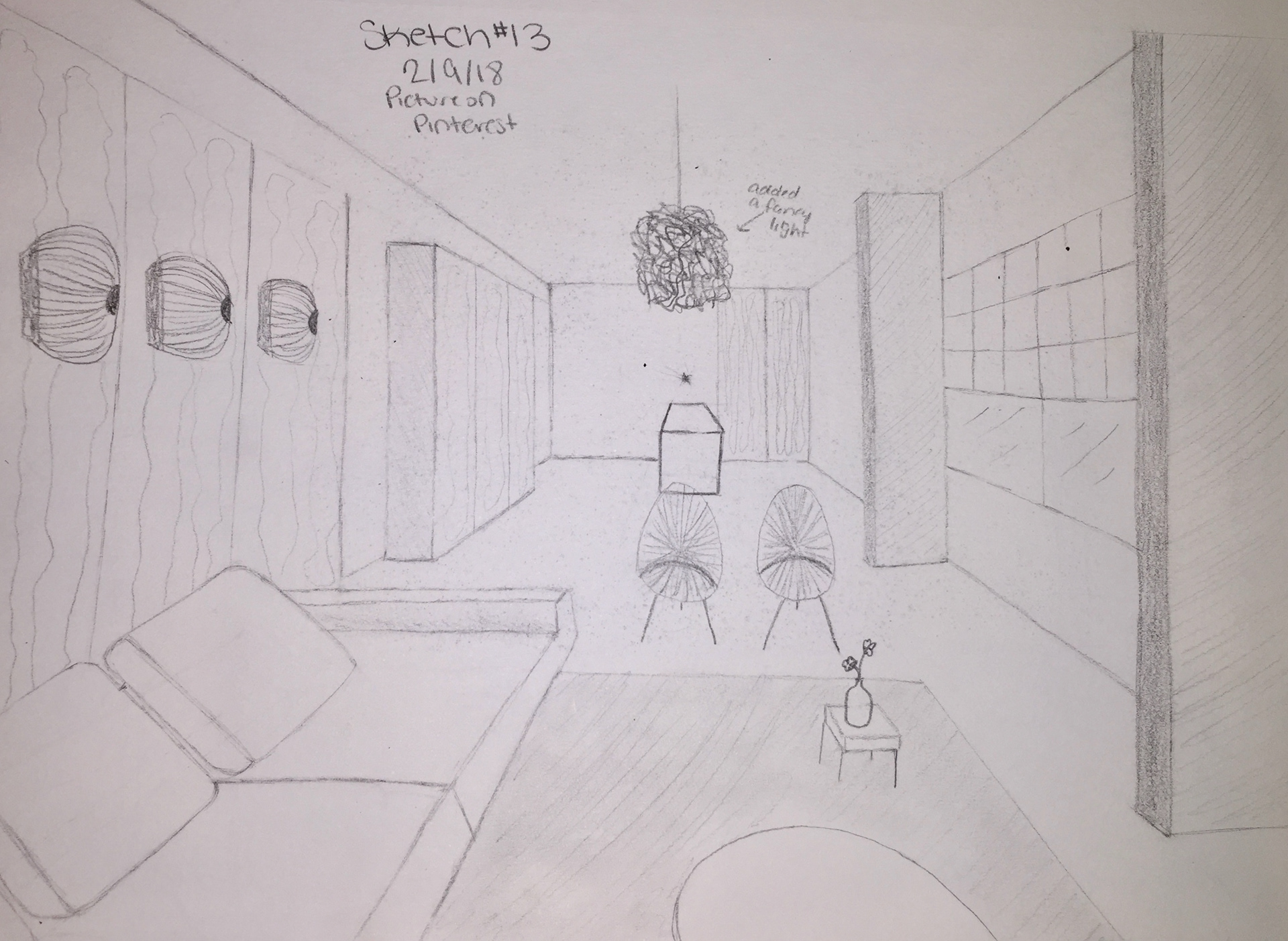 This project was about drawing 30 perspective drawings for the span of 15 weeks. The goal of this project was to improve and enhance our drawing skills of interior spaces. As a designer it is important to be able to quickly sketch out interiors that may inspire us or ideas to present to clients. As you can see, the first few sketches showed that improvement had to be made. As the project went along, I felt my skills with this type of drawing to be really fun and helpful in my design process for other projects.