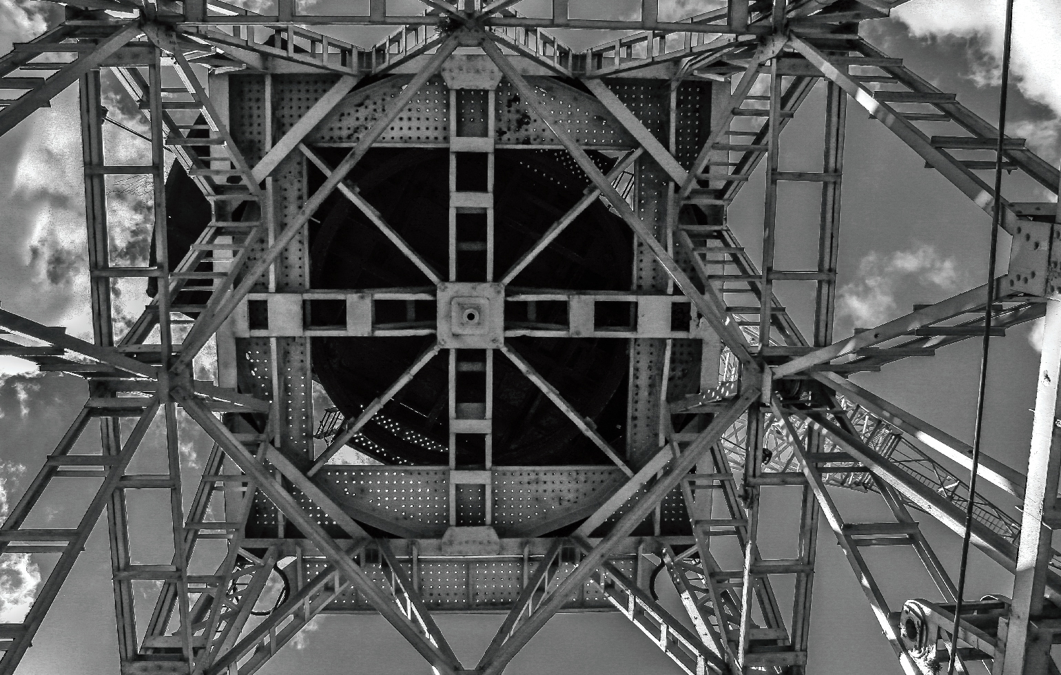 Walking along the river called Rio Darsena Sur, we came across large boat cranes that make up the primary maritime port in Argentina. This crane was along the pathway so I was able to look up from underneath it, looking at the structure of it from a different perspective. ― Buenos Aires, Argentina. March 15, 2019.