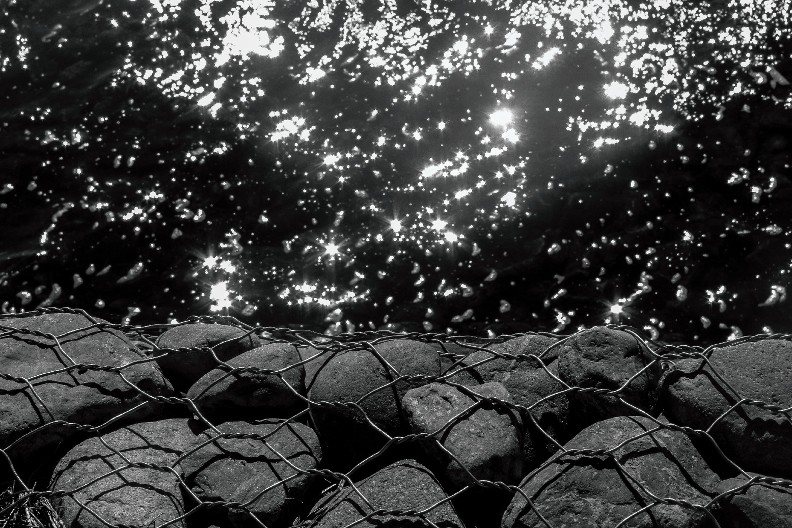 After walking along low lying marshes to a small park overlooking Argentino Lake, we sat down to admire the gentle waves hitting the rocks in the shoreline. These rocks create a barricade that protects the shoreline from corrosion. The glistening from the water mixed with the shadows and texture created from the rocks in the fencing could only be seen the clearest in black and white. ― El Calafate, Argentina. March 12, 2019.