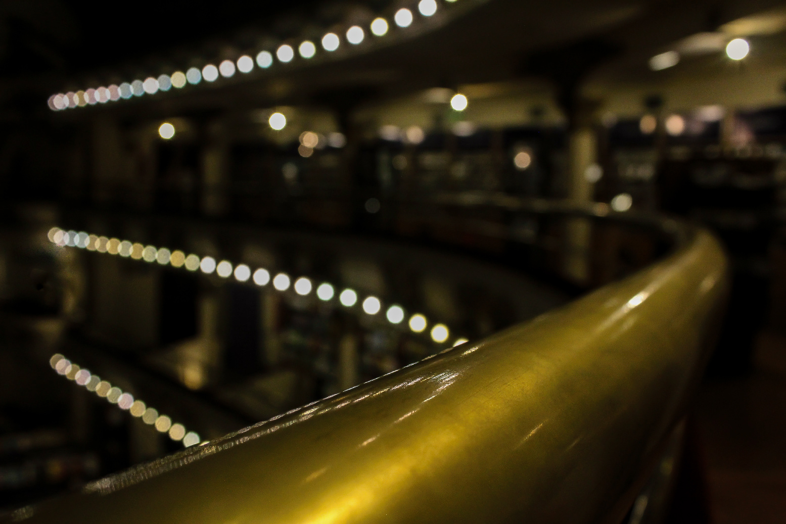 Shelves filled with books line around the three story balconies lit up by lights in this 100- year-old Grand Splendid Theater built in 1919 that was transformed into El Ateneo Grand Splendid bookstore in 2000. It currently welcomes over one million book lovers each year. ― Buenos Aires, Argentina. March 15, 2019.