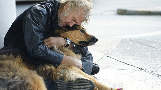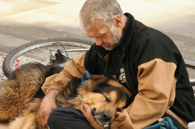 Dog food is hard to come by and the homeless usually panhandle to get money to buy food for themselves and dog.