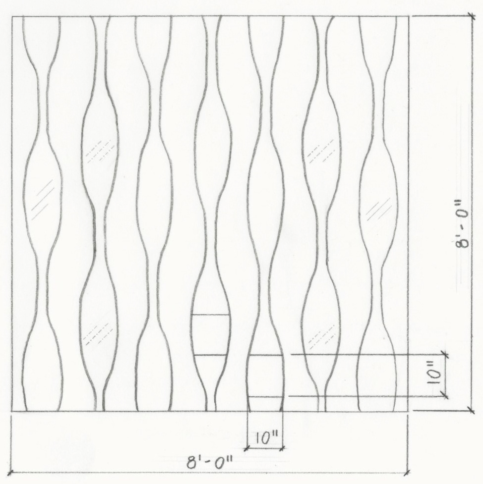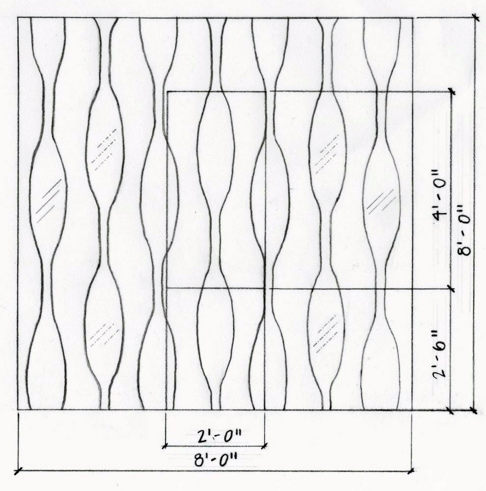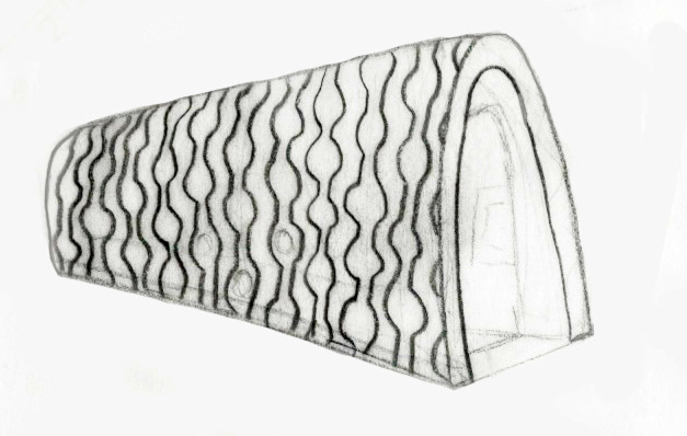 A template I developed on AutoCAD (right) allowed this organic pattern to be correctly spaced and proportioned throughout the form of my design.